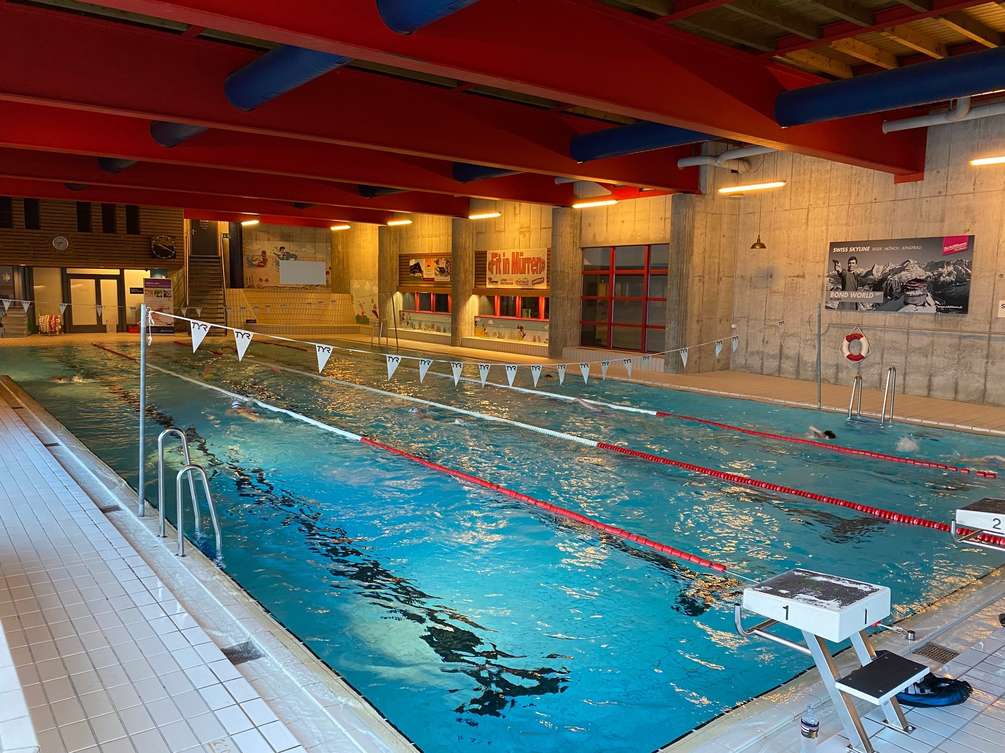 Das Programm war jeweils folgendermassen: 06:45 Frühstück, 07:30 – 09:45 Training im Hallenbad, 11:45 Mittagessen, 12:30 – 15:45 Training im Hallenbad, 16:00 – 17:00 Training in der Turnhalle.